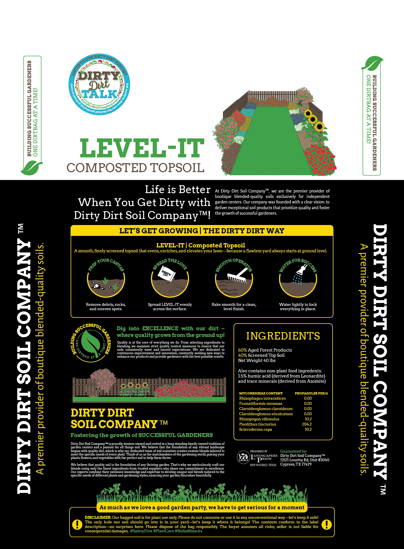 LEVEL – IT is a perfectly finished foundation for your lawn and landscape. This fine, composted topsoil spreads easily to smooth low spots, improves soil structure, and supports healthy root growth. Whether you’re leveling a lawn or giving tired soil a boost, LEVEL – IT helps everything above ground grow better.